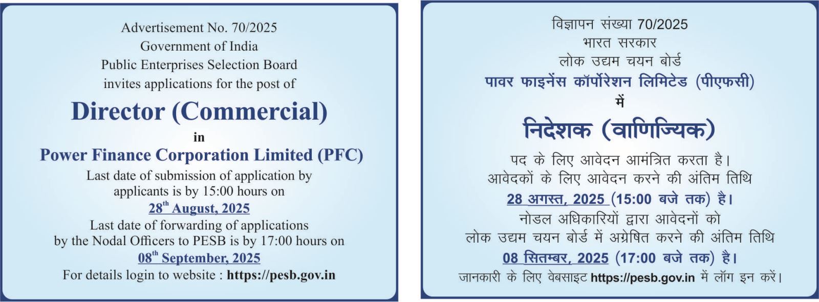 (I) पीएफसी में निदेशक (वित्त) के पद के लिए आवेदन