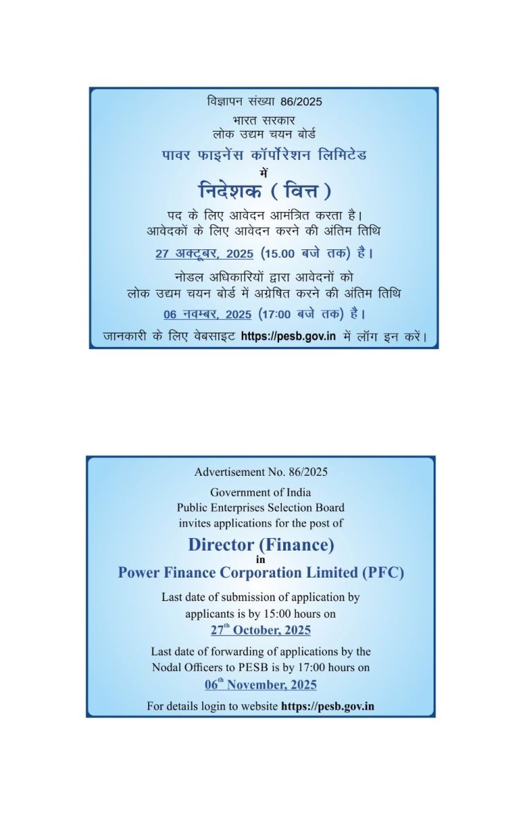 (I) पीएफसी में निदेशक (वित्त) के पद के लिए आवेदन