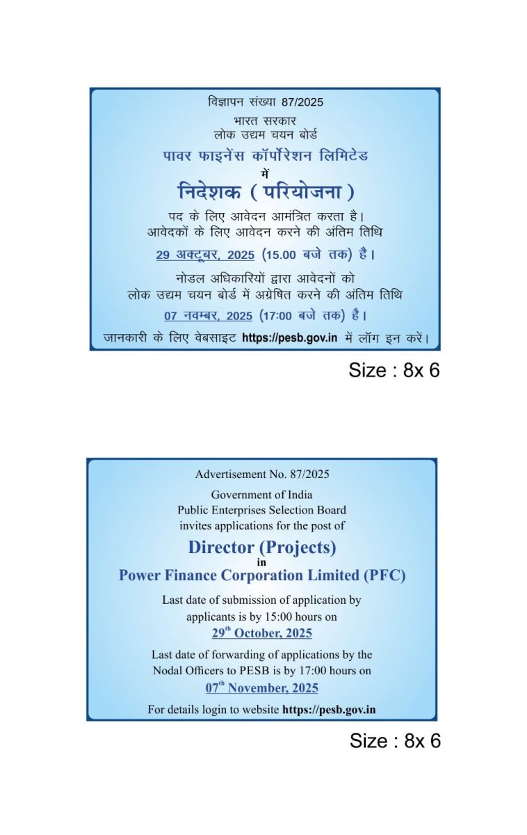 (II) पीएफसी में निदेशक (परियोजनाएं) के पद के लिए आवेदन