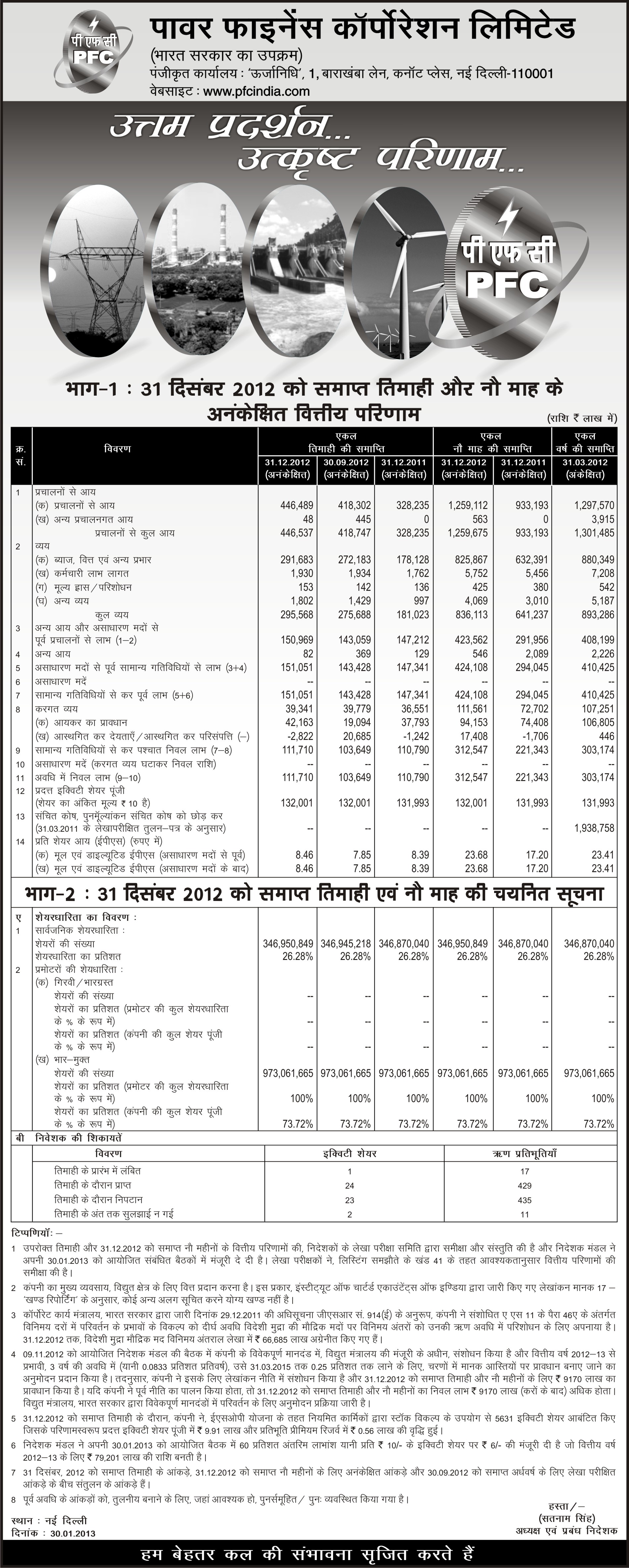 देखिए सीएनबीसी टीवी18 पर पीएफसी की सीएमडी श्रीमती परमिंदर चोपड़ा का विशेष साक्षात्कार जिसमें उन्होंने पीएफसी की वित्तीय विशेषताओं और कार्य-निष्पादन पर मूल्यवान दृष्टिकोण साझा किए हैं